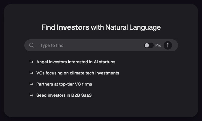 Find AI offers an innovative approach to investor discovery. It uses artificial intelligence to search through a database of over 1+ million professionals, including LinkedIn profiles, to find investors who match your specific criteria.